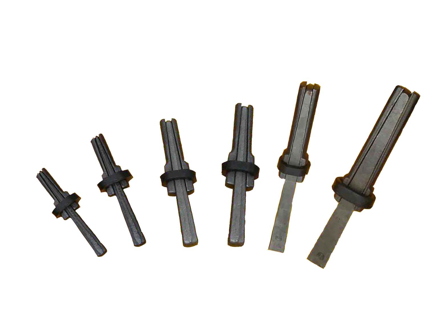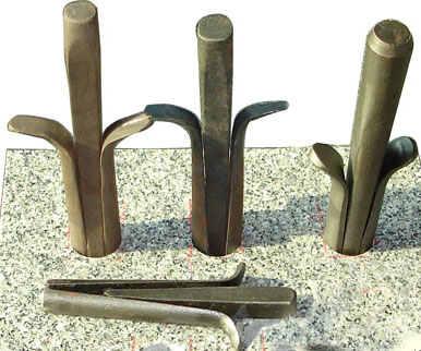 2. أدخل الأوتاد والحشوات في الثقوب كما هو موضح. تأكد من أن "الأذنين" تواجهان الاتجاه الذي تريد أن ينقسم فيه حجرك.