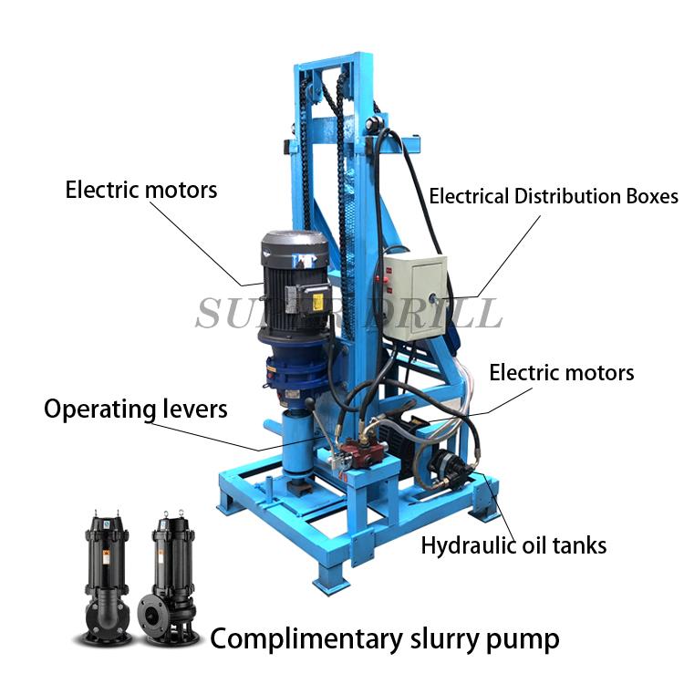 Product المواصفات (سم) 90X110X180 سم الوزن (كلغ) 320 كيلوجرام قطر أنبوب الحفر (مم) Ø51 طول أنبوب الحفر (مم) 1600 طريقة تدوير أنبوب الحفرموضوع أوتوماتيكيطريقة التبريد الهيدروليكيعمق البئر (م) 150 قوة المحرك 7 / طرق 4kwTorque350N*mDrilling تأثير ودورانقوة مضخة الطين (حصان) 3hp / 2.2kwقطر البئر (مم) Ø 400mmHosting الارتفاع (مم) 2500 سعة الاستضافة (كجم) 1200 وحدة مكتملة من آلة الحفر تشمل المحرك الرئيسي والأدوات وحلقة الرفع * 1 ، 2 وحدة