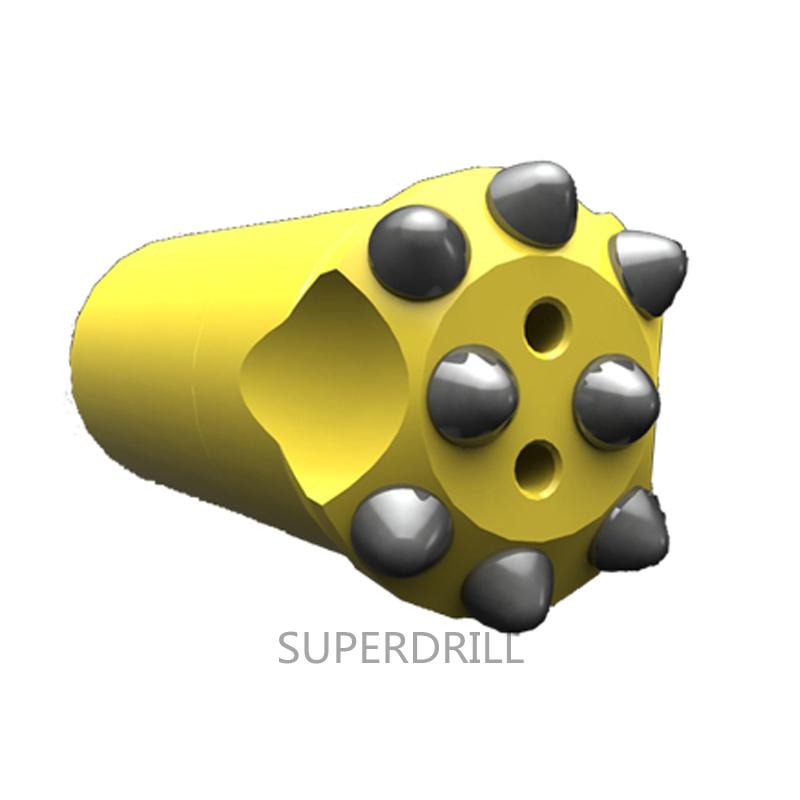 Drill بت: زر ملولبة بت R32 موضوع ، قطر: 41 مم ، 43 مم ، 45 مم ، 48 مم ، 51 مم ، 57 مم ، 64 مم ، 76 مم. لقم الثقب المتقاطع من النوع R32 ، قطر: 41 مم ، 43 مم ، 45 مم ، 48 مم ، 51 مم ، 57 مم ، 64 مم. 32-R28 10 أقدام. 32-R32 12 14 قدم. أدوات التوسيع القبة: قطر محول الطيار 40mm × 12 تفتق R28 (R32) thread.reaming بت 76 89 102mm x R32 thread.Shank محول: محولات عرقوب R32 مناسبة لمختلف قضبان التائه نوع.