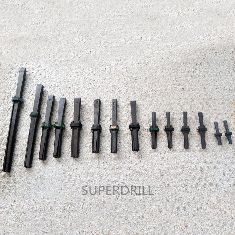 Características del producto: calzas y cuñas es una herramienta muy eficaz y que ahorra mano de obra, especialmente para minas que aplican bloques de piedra de cantera de tamaño pequeño. Adecuado para minerales en capas de cantera que son horizontales o suavemente inclinados, tienen una profundidad de capa de alrededor de 1,5 m. Más tamaños y formas para su elección.