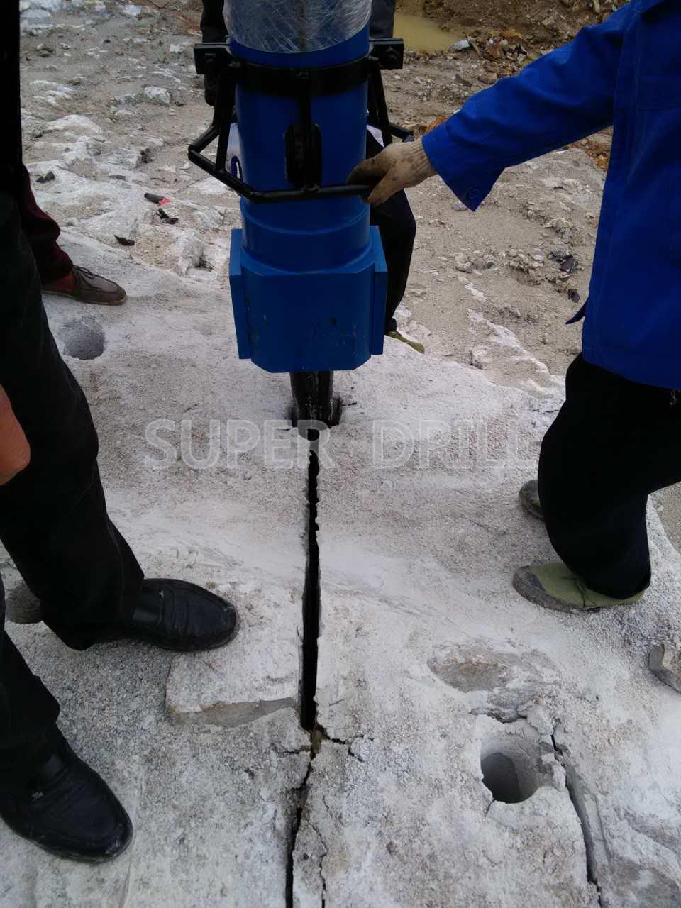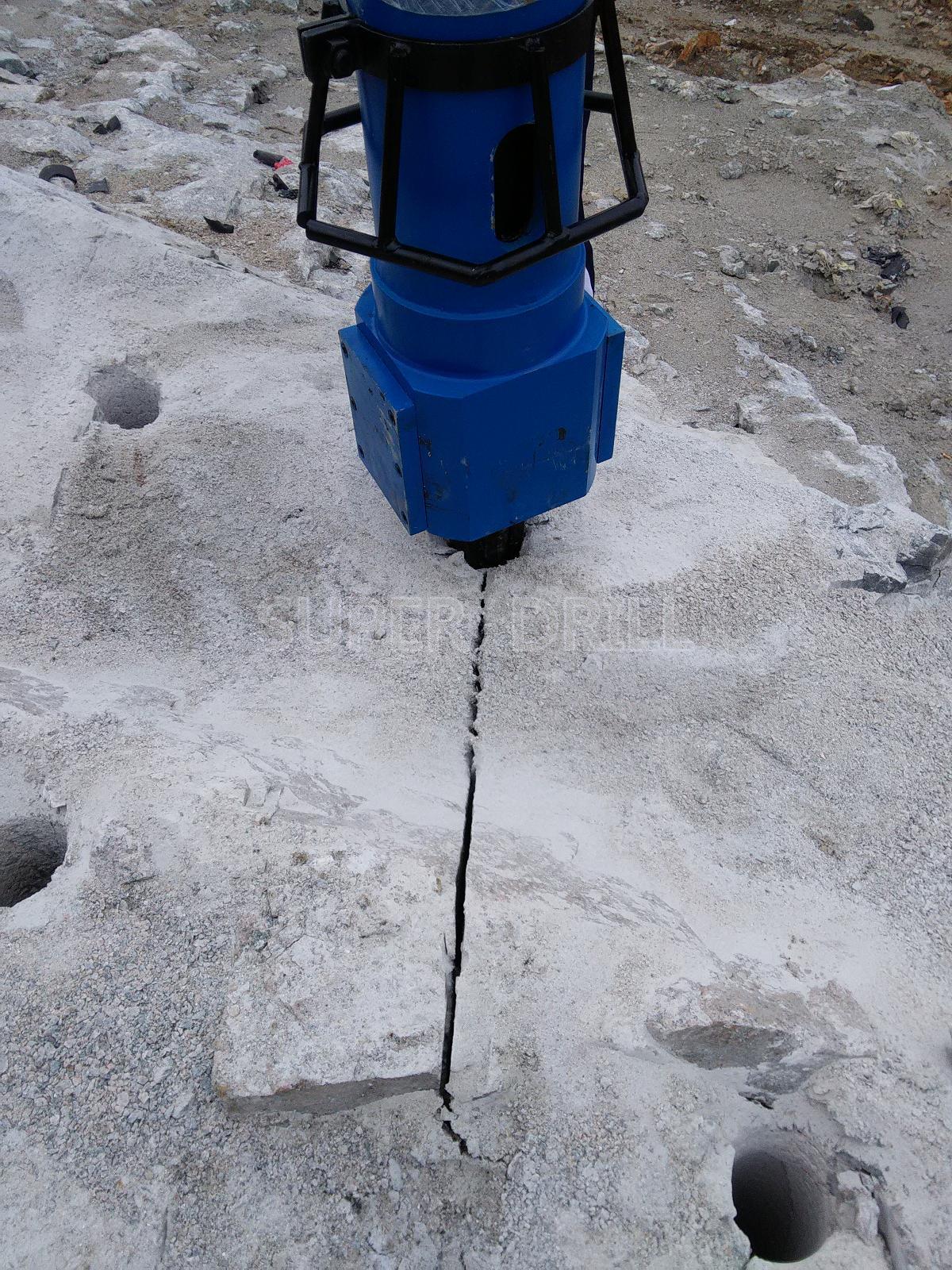 Excavator Divisor de roca: Su principio de funcionamiento es Como los divisores de roca hidráulicos universales consisten en dos cuñas que se insertan en un orificio pretaladrado y un cilindro hidráulico empuja hacia afuera un tipo de arreglo vertical, tipo de rotación, según su propósito y tamaño de la máquina. Para aplicaciones verticales (hundimiento de eje, excavación a cielo abierto), el divisor de roca está montado en una cadena o alambre de una excavadora convencional de clase de 12 toneladas o más grande. DIÁMETRO DE AGUJERO (mm) AGUJERO DE PROFUNDIDAD (mm) LONGITUD DEL EFECTO CUÑA EXTERNA (mm) CUÑA MEDIA FUERA (mm) PESO DE FUERZA REAL (T) (Kg) LONGITUD DEL CILINDRO (m) ANCHO DE DIVISIÓN (mm) PRESIÓN HIDRÁULICA (Mpa) SD160125012503003590, 102,1057501440-16802.2SD2001250125048035145015005203590, 102,1057502100-31502.9165017650309
