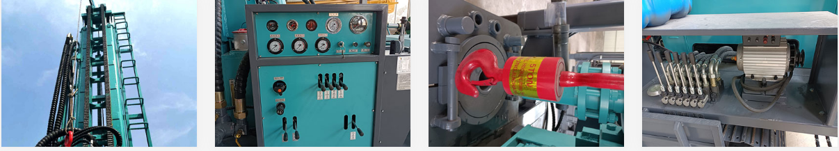 Advantages1. O comprimento do avanço uma vez atinge até 6,6m, o que reduz o tempo para instalação do tubo de perfuração e custo de mão de obra. 2. O dispositivo de elevação de cilindro duplo oferece uma grande potência de elevação de até 17T. 3. As quatro pernas hidráulicas fortes permitem um levantamento de 1,5 m e uma distância ao solo real de até 1,45 m, o que é conveniente para a estabilidade da máquina e carregamento e transporte.
