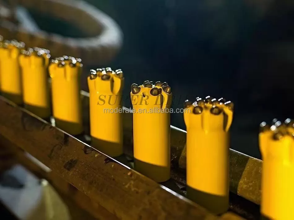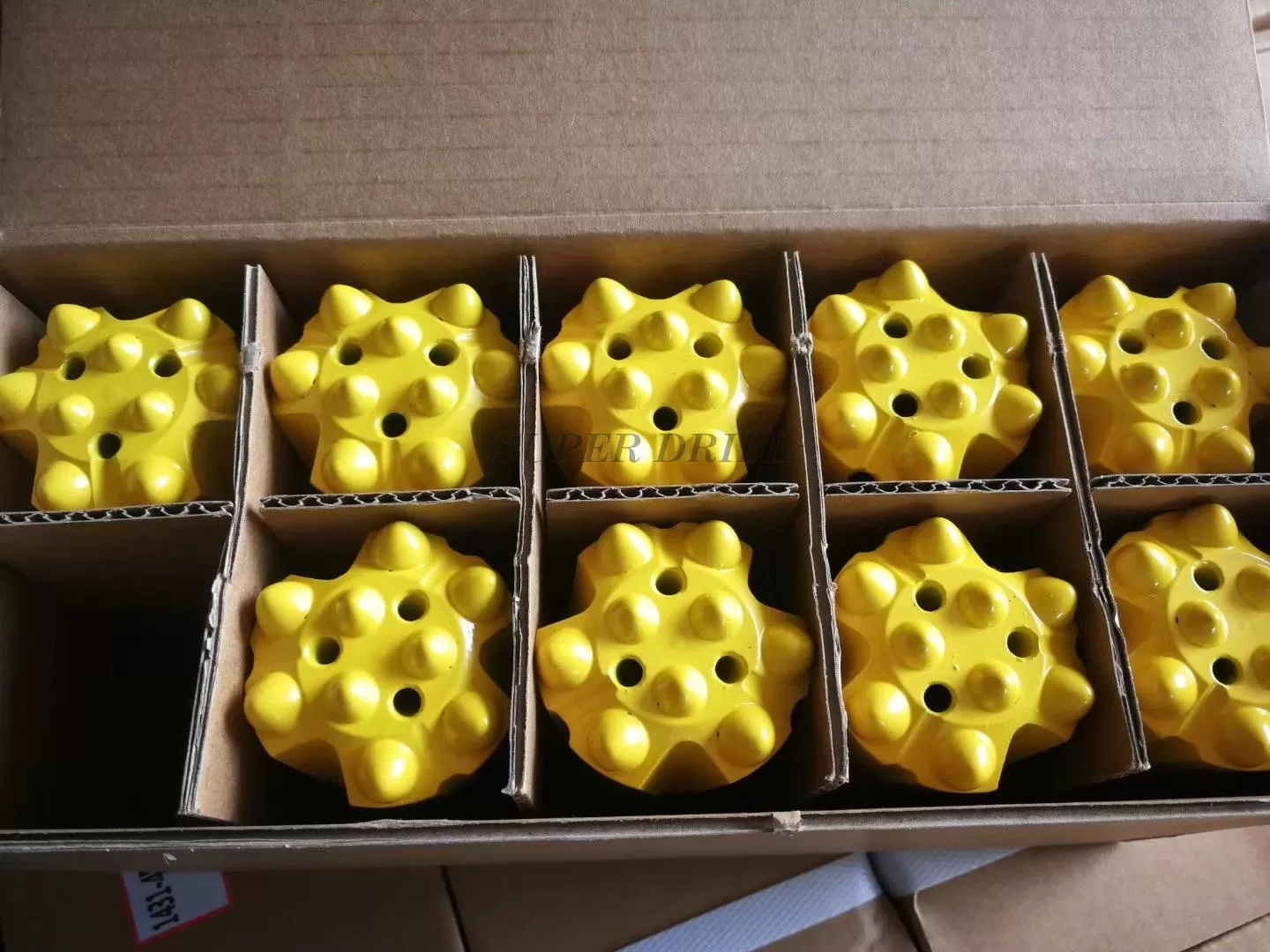 Alta Qualidade 7 Botão 36mm 38mm Botão Cone Pedreira Pedra Broca Bits Para MiningName: brocas de botão cônicas para pedreira, mineração, tunelamento-Botão No.: 4,5,6,7,8.-Diâmetro:30/32/34/36/38/40/42/50/53mm-Material: 35CrMoNiV, Carbide.-Grau de cone: 7,11,12.-Rod Shank: Hex19 * 108, hex 22 * 108, -Máquina: Rock Drill, Jack Hammer-Embalagem: Caixa de madeira-Tempo de entrega:7-15days-Certification: ISO9001: 2015-Uso: Ferramentas de Perfuração-Aplicação: Usado para pedreira de granito e mármore, mina de ouro, ferrovia, túnel etc.