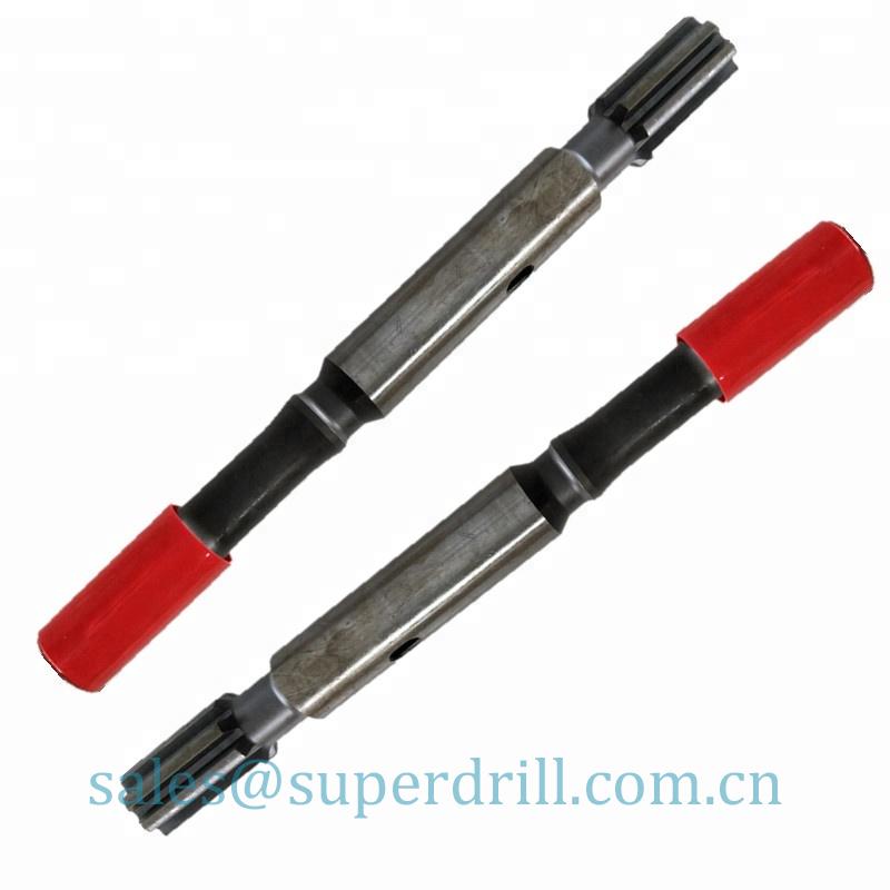 In a indústria de perfuração, existem muitas maneiras em relação às conexões entre diferentes peças de reposição, por exemplo, para hastes de perfuração cônicas e brocas cônicas, o grau de afunilamento é uma maneira. Embora haja outra maneira, que é por fios. Isso significa que diferentes peças de reposição podem ser conectadas por roscas. Portanto, dizemos adaptadores de haste, acoplamentos, hastes de extensão, Cross Bits rosqueados e brocas de botão rosqueadas pertencem a produtos de perfuração rosqueados. O adaptador de haste é usado para transmitir energia entre a furadeira e as hastes da broca. Uma extremidade é conectar a broca, outra extremidade é conectar as hastes da broca, dessa forma, a energia da furadeira é transmitida para as brocas, finalmente as rochas são cortadas. No mundo, existem diferentes máquinas de perfuração, portanto, diferentes adaptadores de haste estão disponíveis.