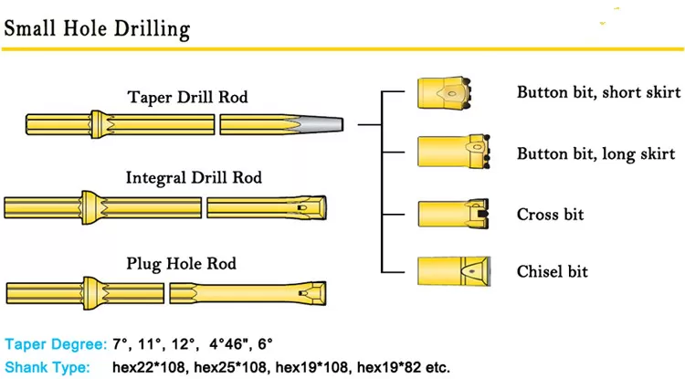 Application | Tapered drill bits are used in granite and marble quarry, gold mine, railway, tunnel, etc. for drilling |